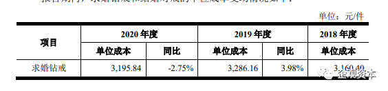DR品牌求婚钻戒单位成本仅在3200元左右来源:招股书