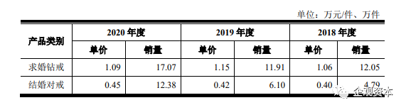 与此相对应,在销售端,2018年至2020年DR品牌求婚钻戒的单价分别为1.06万元/件、1.15万元/件和1.09万元/件,单价均在1万元以上。