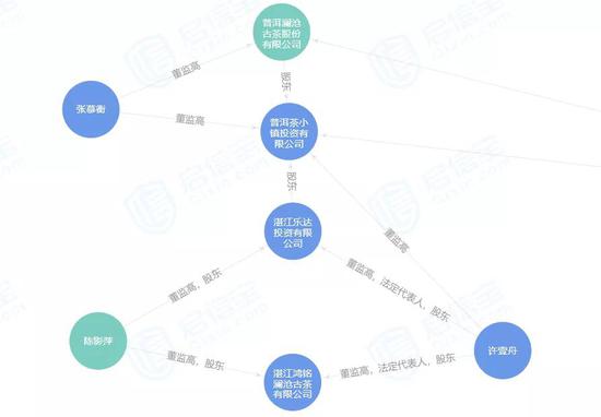 在启信宝上,澜沧古茶经销商的实控人许壹舟、陈影萍,被直接认为是与澜沧古茶共同投资普洱茶小镇的许壹舟、陈影萍