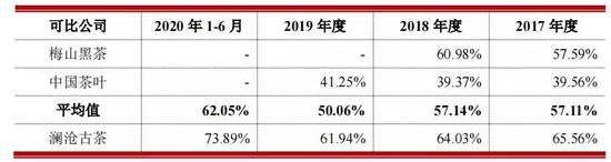《每日经济新闻》记者注意到,澜沧古茶毛利率远高于同行。2017年~2020年上半年,澜沧古茶综合毛利率分别为65.56%、64.03%、61.94%、73.89%。而同期,行业平均值分别为57.11%、57.14%、50.06%、62.05%。