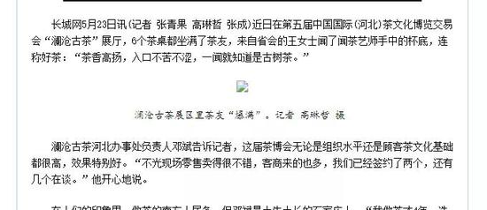 澜沧古茶2019年前十大客户之一石家庄兆春商贸有限公司,实际控制人为邓斌。而根据长城网2017年的信息,邓斌还有一个身份是澜沧古茶河北办事处负责人(如下图)。