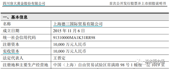 王晋定开始担任四川黄金的副董事长,或与一宗股权转让有关。2019年11月北京金阳将其持有的22%出资转让给上海德三,转让对价为3.3亿元,折算转让价格为单位注册资本15元。上海德三的全称为“上海德三国际贸易有限公司”,该公司的法定代表人便是王晋定。