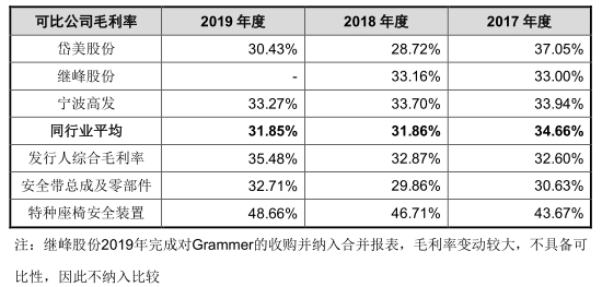 报告期内,同行业可比公司毛利率均值分别为34.52%、34.66%、31.86%、31.85%。