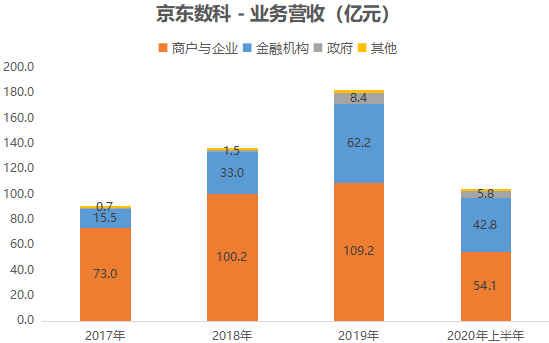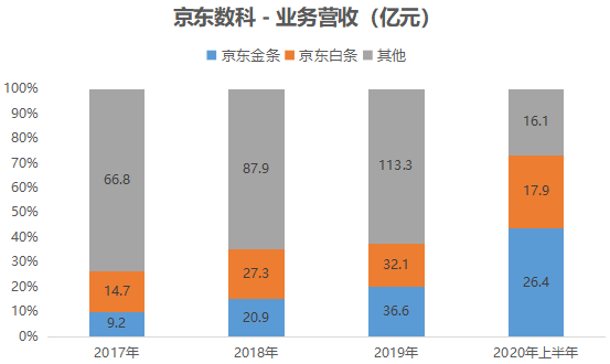 从2017年至2020年上半年间,京东数科的收入中有三成来自京东。