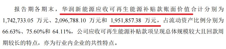 除了盈利质量下滑,华润新能源的资产变现能力亦不容乐观。新能源发电行业普遍的补贴拖欠问题在华润新能源身上体现得淋漓尽致。