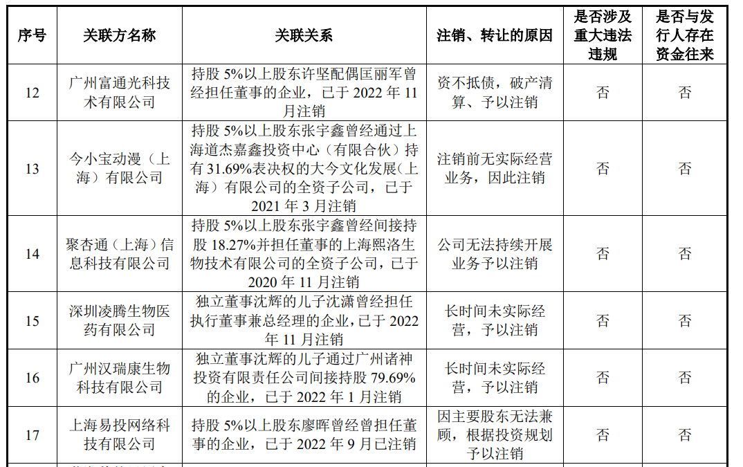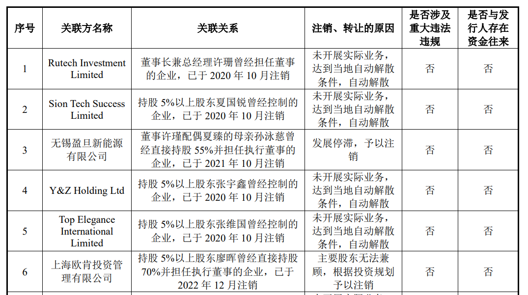 据此,儒兴科技被要求说明关联方注销或转让的原因及合理性,存续期间是否存在重大违法违规情形,是否与发行人存在资金业务往来;转让或注销后资产、业务、人员的去向,是否从事与发行人相近或上下游业务等。
