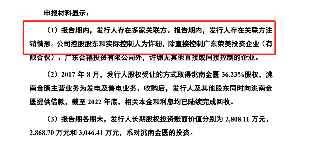 报告期内,儒兴科技存在多家关联方。报告期内,儒兴科技存在关联方注销情形。儒兴科技控股股东和实际控制人为许珊,除直接控制广东荣美投资企业(有限合伙)、广东合禧投资有限公司外,许珊无其他直接或间接控制的企业。