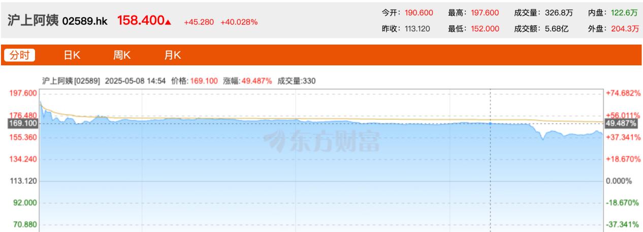 茶饮行业的资本热潮在今年集中爆发,5月8日,沪上阿姨正式在港交所挂牌上市,发行价为113.12港元,全球发售241.13万股H股。开盘后股价大涨,盘中最高涨幅超74%,最终以158.4港元收盘,较发行价上涨40%。