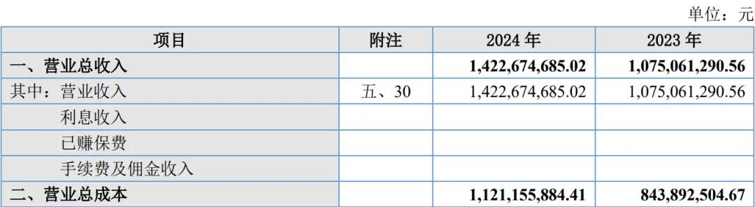 2023年以及2024年,公司营业收入分别为10.75亿元、14.23亿元;净利润分别为2.26亿元、2.99亿元。