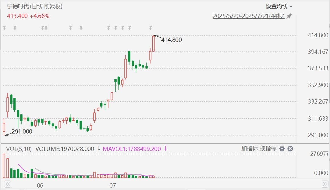 A股一度涨近4%报282元,股价2024年10月以来新高;H股涨5%报414.8港元,再创上市新高。截至目前,宁德时代H/A溢价35%。