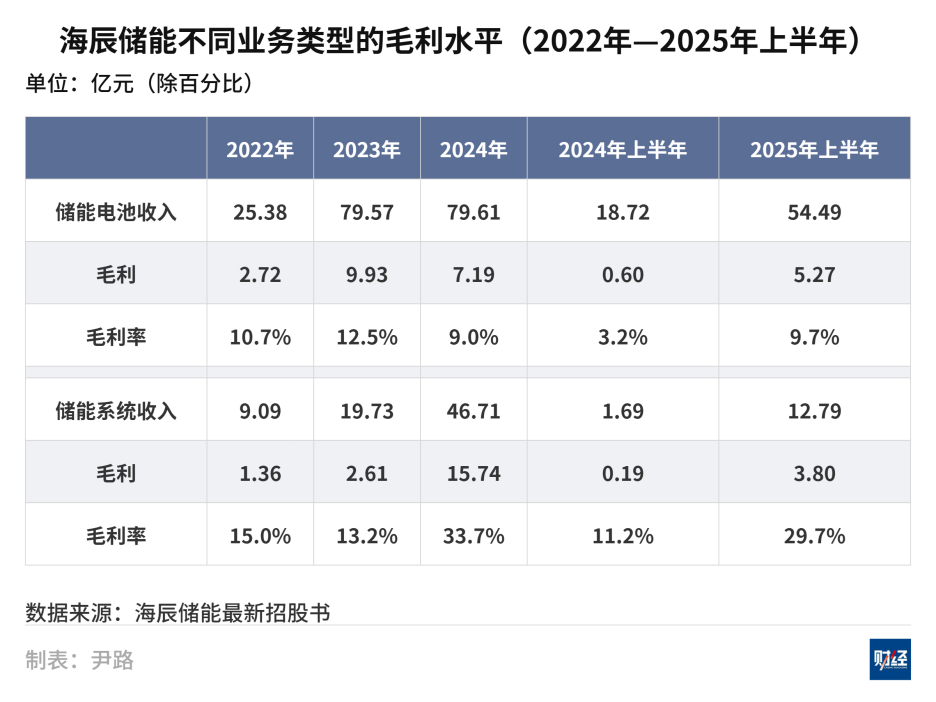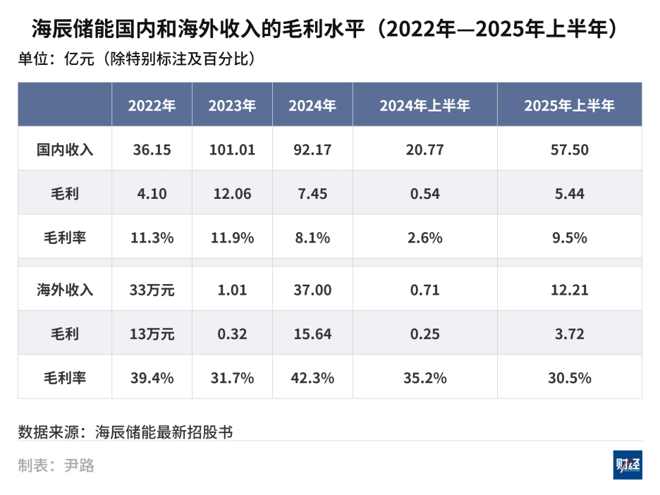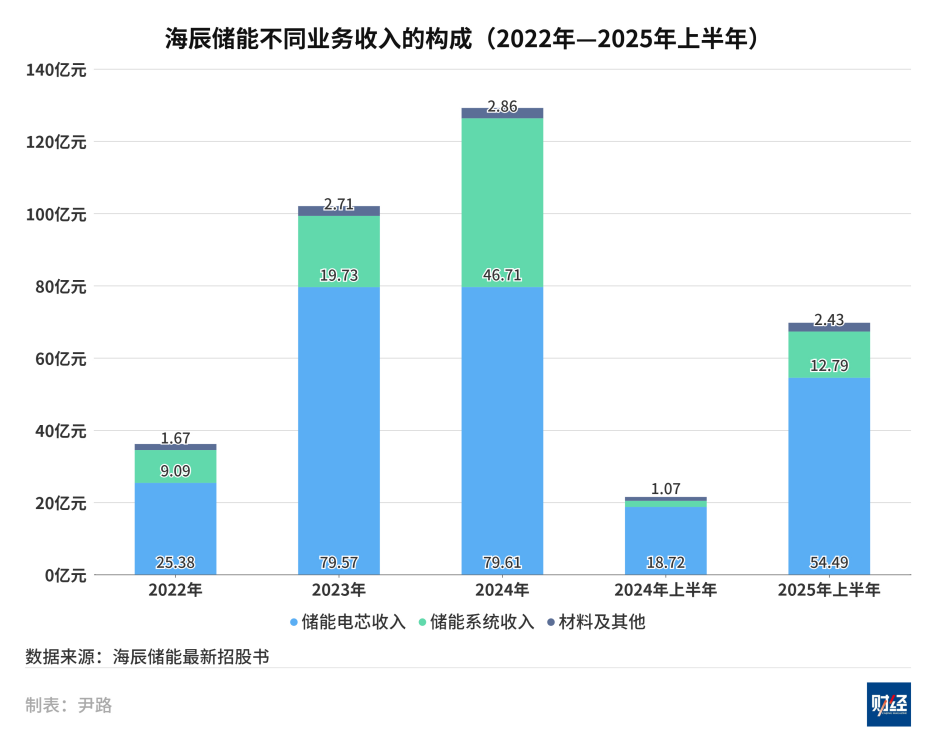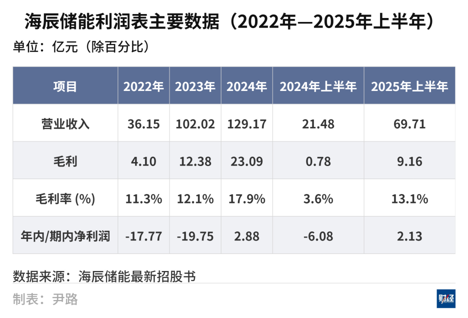 海辰储能的营收和利润数据体现了强劲的增速。营业收入从2022年的36.15亿元,增至2024年的129.17亿元,年均复合增长率89.0%。2025年上半年,增速还在加快,收入达到69.71亿元,同比增速224.6%。利润方面,2024年海辰储能实现扭亏为盈,净利润2.88亿元,并在2025年上半年继续盈利2.13亿元。