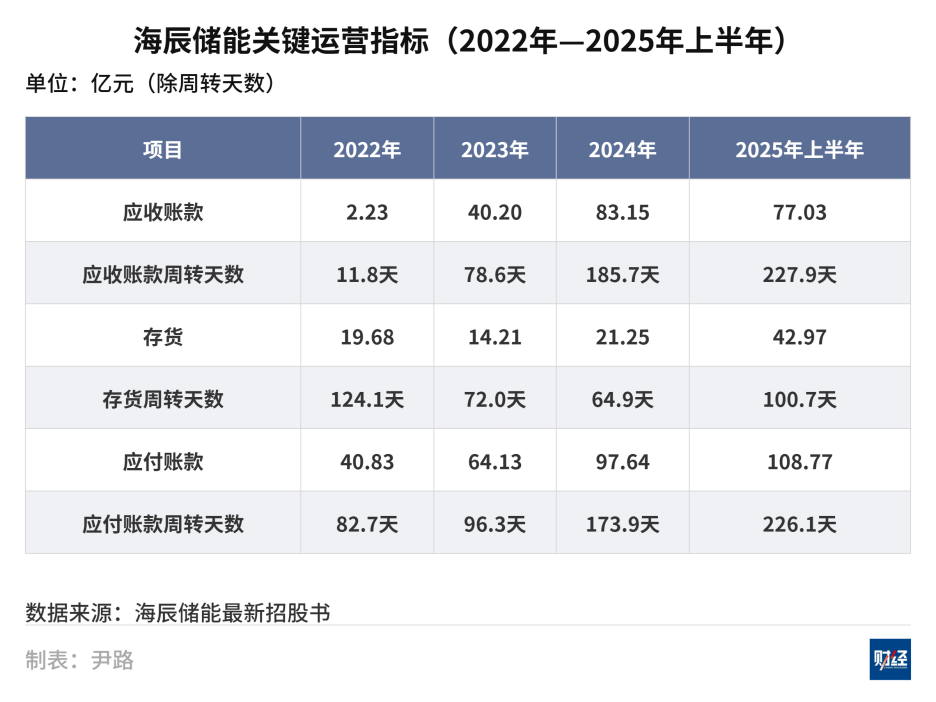 这些变化直接反映在财务指标上,应收账款周转天数明显增加。海辰储能在2022年、2023年、2024年和2025年上半年的应收账款周转天数分别是11.8天、78.6天、185.7天和227.9天。回款周期大幅延长给公司现金流带来了直接压力。