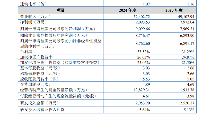 财务数据显示,2023-2024年,裕富照明营业收入分别为4.91亿元和5.24亿元,扣除非经常性损益后归属于申请挂牌公司股东的净利润分别为6891.17万元和8762.6万元。