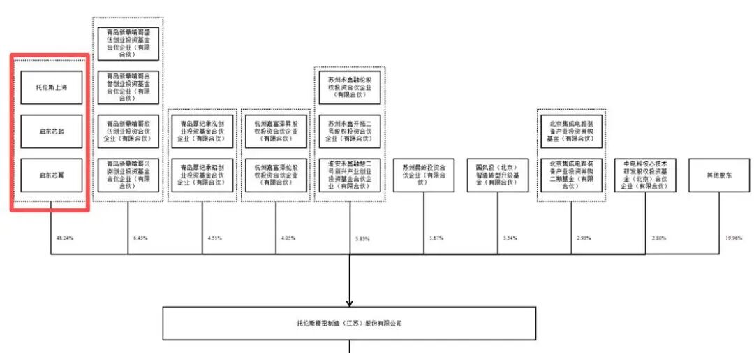 截止递表,托伦斯由托伦斯上海、员工持股平台启东芯起、启东芯翼分别持有43.99%、2.76% 、1.49%,托伦斯上海由钱珂100%持有,启东芯起、启东芯翼由钱珂控制。因此,钱珂为托伦斯实控人,控股比例48.24%。