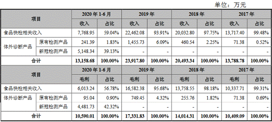 易瑞生物在其最新版上会稿招股说明书中表示,2020年年初,受疫情影响,公司迅速研发出了新冠检测试剂产品并取得了境外销售资质,受该产品影响,2020年上半年体外诊断业务收入出现较大幅增长,从而对公司收入结构产生影响。