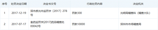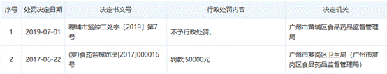 公开信息显示,2017年和2019年,广州迪澳生物科技有限公司分别被行政处罚一次。