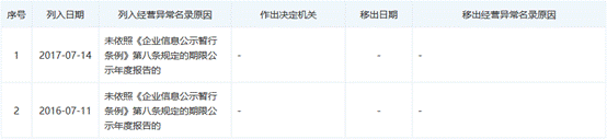 此外,还有供应商被列入经营异常名单。