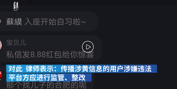 有律师认为,传播涉黄信息的用户已经涉嫌违法,平台方应该进行监管和整改。具体来看,如果是传播视频物品,那这些人已涉嫌违法甚至犯罪;如果发现传播这些淫秽物品的是未成年人,那家长和学校都有责任,同时QQ作为网络服务的提供者,也有不可推卸的责任。