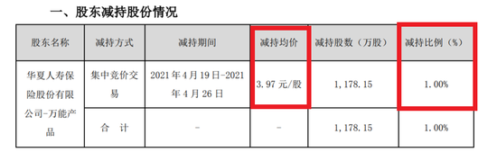 不过,时隔近1个月,4月26日力源信息再次收到华夏人寿发来的减持计划进展告知函称,减持数量已经超过了半数,即本次累计减持股数已达到了总股本的1%。在此期间的减持均价3.97元,已成功套现约4677万元,基本符合上述预估。