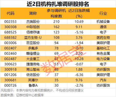 近两个交易日(4月16日至4月17日)共有43家公司公告机构调研记录,杰瑞股份、中际旭创、佰维存储、益方生物-U等4家公司均有超百家机构扎堆调研。