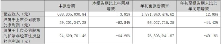 业绩方面,2023年前三季度,亿道信息主营收入18.72亿元,同比降低12.08%;归母净利润9502.77万元,同比降低44.42%;扣非净利润7689.32万元,同比降低49.18%;其中,第三季度主要收入6.89亿元,同比降低3.92%;归母净利润2920.13万元,同比降低62.84%;扣非净利润2462.98万元,同比降低64.28%。