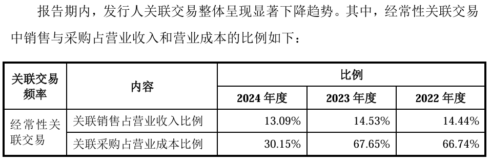 2024年,公司通过引入外部供应商,使关联采购比例骤降至30.15%。从形式上看,关联依赖程度有所下降,但公司与关联方地理位置相邻、园区共建的现实并未发生根本改变,部分原材料曾通过管道输送方式实现成本优势。有分析师认为,这一“突击式”的供应商切换在商业逻辑上极不合理,存在明显的“为上市而努力”的痕迹。