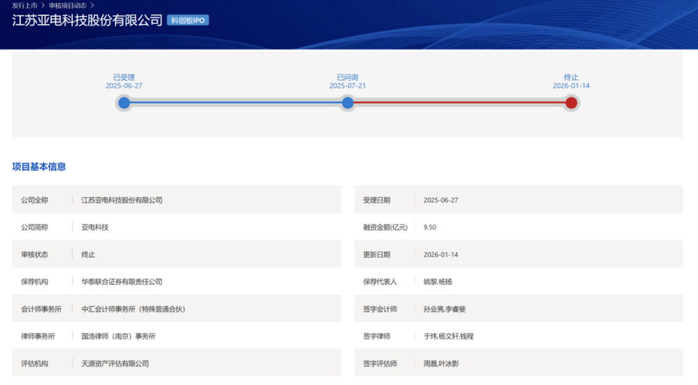 一周内,另一家科创板IPO亚电科技也因撤单终止审核。受理与问询时间与沁恒微处于同一时间段。