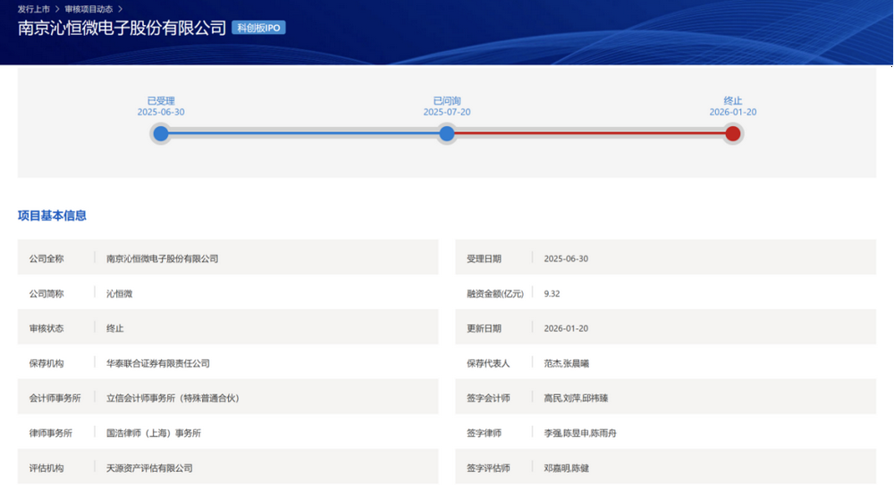 2025年6月30日,沁恒微再次递交申请并获上交所受理,官网信息显示,公司已于同年7月20日进入问询阶段,不过相关问询文件并未对外披露。此次主动撤单导致历时半年多的上市进程以失败告终。