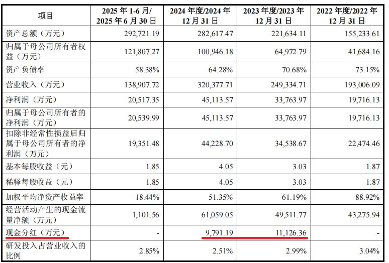 然而,这家“隐形冠军”企业正面临一系列审视:在贸易摩擦导致业绩下滑的同时,公司在2023年至2024年连续两年进行现金分红,合计超过2亿元。