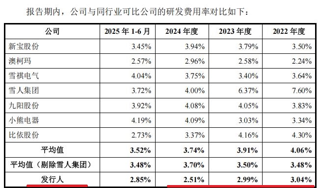 2022年至2024年,公司研发费用率分别为3.04%、2.99%、2.51%,连续两年低于高新技术企业认定标准。