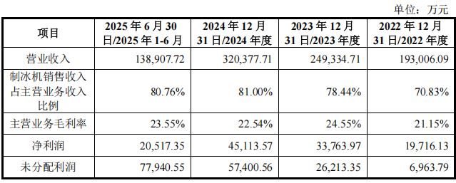 报告期内,制冰机销售收入分别为13.62亿元、19.48亿元和25.78亿元,占主营业务收入的比例逐年上升至81%。