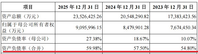 这种“只赚账面钱”的窘境,叠加公司资本支出的巨大需求,使得负债率持续攀升。报告期内,公司合并资产负债率从54.80%增长至59.98%,负债总额高达1411.12亿元。高负债与低流动性并存,使得公司在面对即将到来的大规模募投项目建设时,资金链的紧绷程度可见一斑。